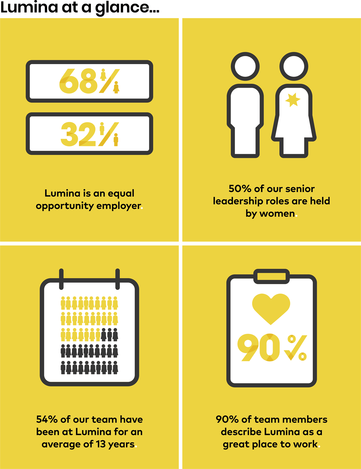Respect for all stands as a pillar of Lumina’s six fundamental principles, aimed at fostering a diverse and inclusive culture that sets us apart as an extraordinary company to work for and with.